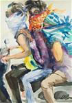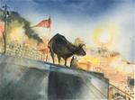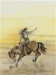 Bronc Riding, Watercolor, 12×9″, Jean Krueger, copyrighted with all rights reserved, 2017