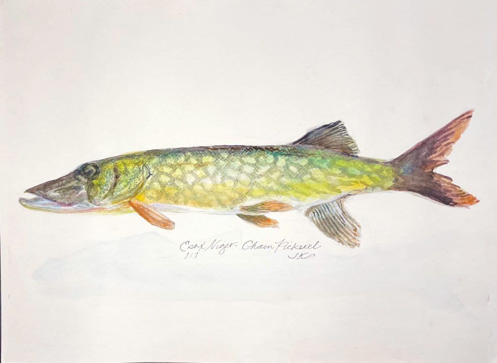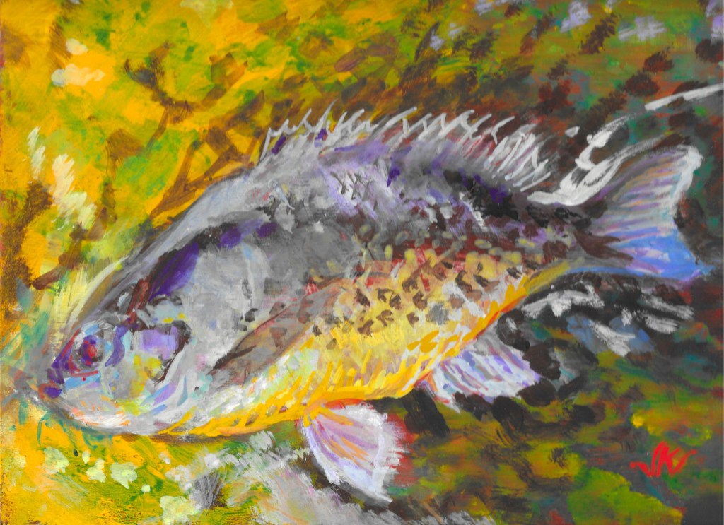 Black Crappie, Rock Bass, watercolor, 16×12″, 2021