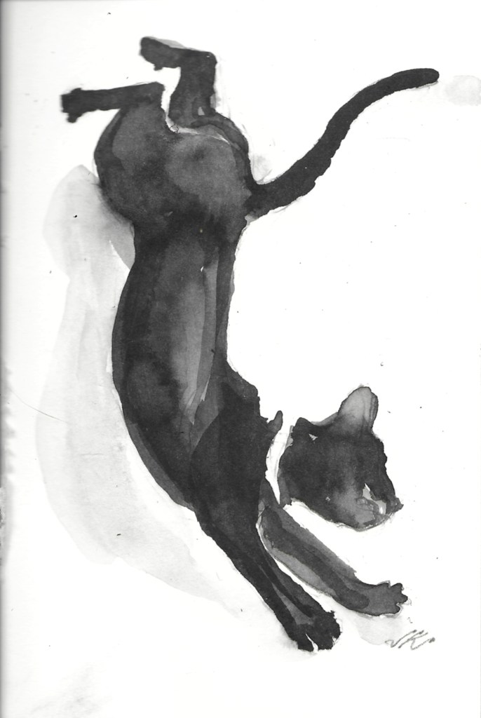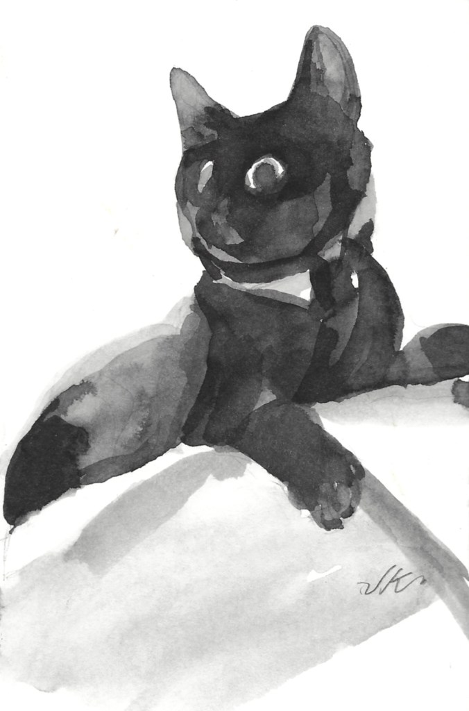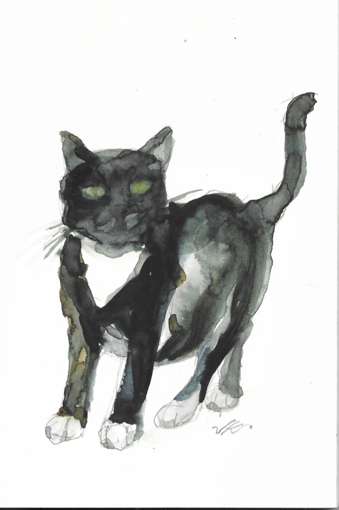 Buck the Cat, Original Watercolor, 8×6″, 2018, copyrighted with all rights reserved by Jean Krueger