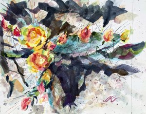 Sonoran Desert, Arizona, cactus viewed from above. Artists’ pigments on 140# Hot Press watercolor paper.