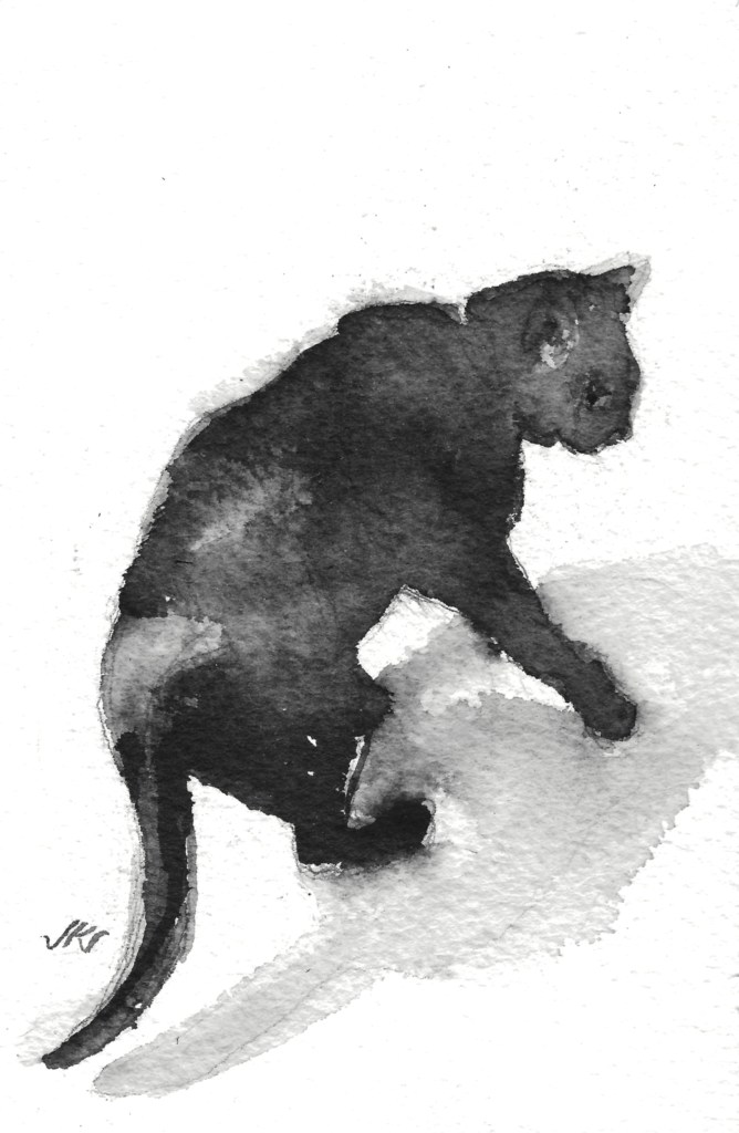 I have trouble painting every day, sometimes circumstances just won’t allow me to do anything but think about painting, conceiving a painted image, observing light and planning how I can represent it on paper. The Daily Cat series gives me the opportunity to paint something that is quickly completed on a regular basis even if I don’t have to have time to paint larger and more substantial work. Even though these little works are small, they still keep me in the daily painting game, moving me forward to the next bigger and more complex painting.