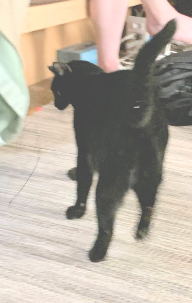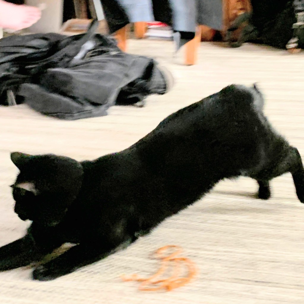Buck the Cat ponders what’s going on in the other part of the room, perhaps he should investigate.