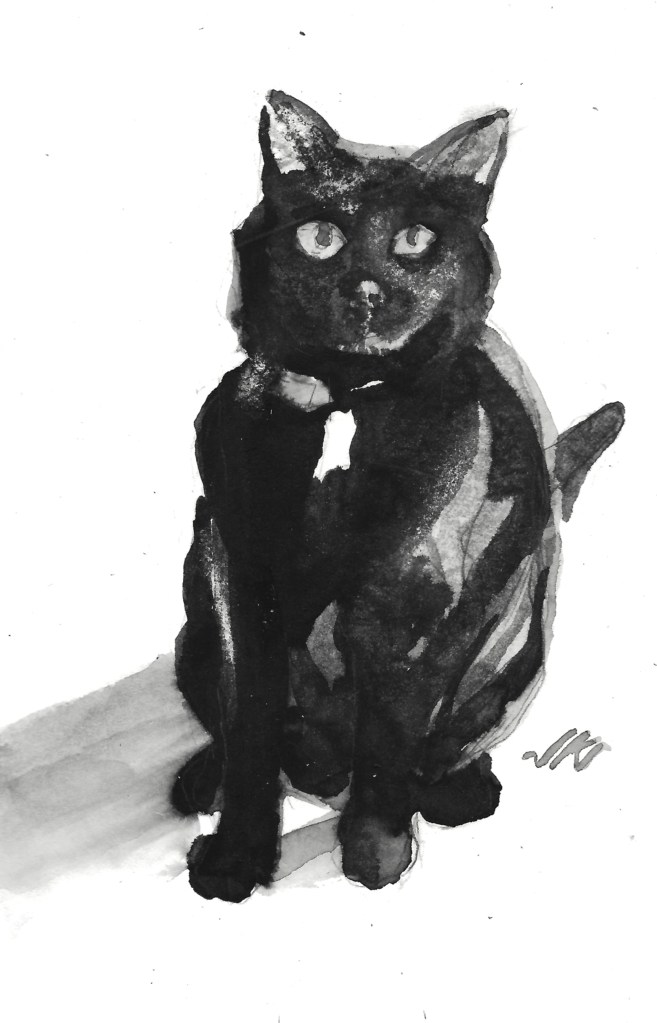 I’ve now painted 100 Daily Cats. I started this series in December of 2018, and there’s been a lot of days with no cats painted. Still, I’m pleased to have reached this milestone and will continue the project. I get a little bit better with each painting, see a bit more clearly and gain control of the inky media.
