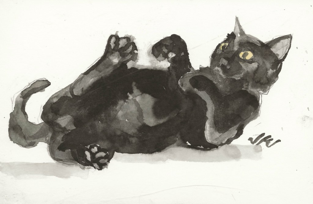 Kitty pounces and misses, he’ll be back for more. I used an ox gall underpaint for this to increase diffusion and transparency.