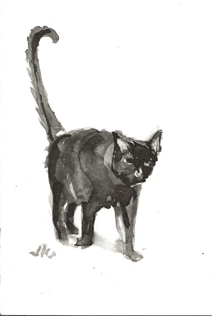 Here’s Buck, painted from one of his archive photos. Oh, how I miss him while we’er in stockholm. I’m emotionally dependent on his omnipresent indifference and I don’t even mind when, out of the blue, he’ll hiss and bite the hand that feeds him (that’s my hand.) He’s not the best cat but he’s my cat and I forgive his miscreant ways. Meow.