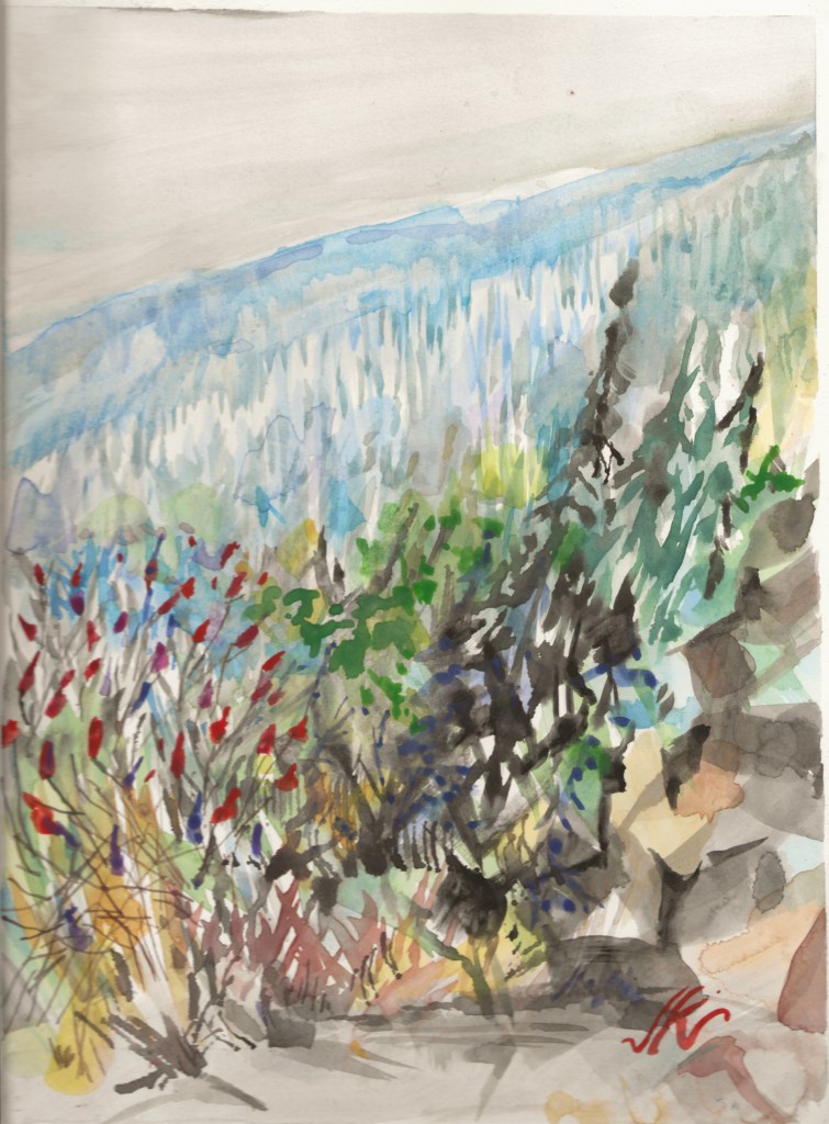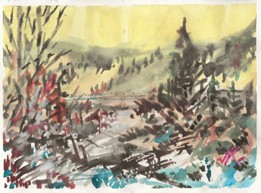 Working with gouache, appreciating its opaqueness and ability to layer.