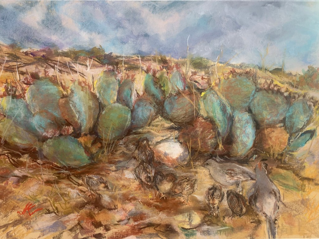 Violet Prickly Pear, 2017, Soft and Hard Pastel,20×16″, Jean Krueger Fine Art, copyrighted with all rights reserved