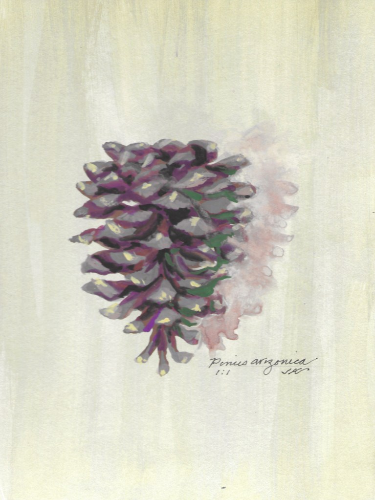 Ponderosa Cone, Watercolor, 6×6″, Jean Krueger, 2017, with all rights reserved