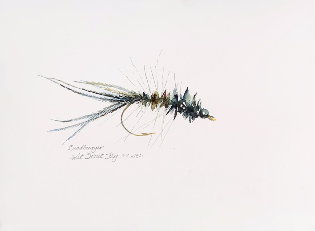 Minnow Bugger – Wet Fly, $50 USD, watercolor, 9×12″, 2020