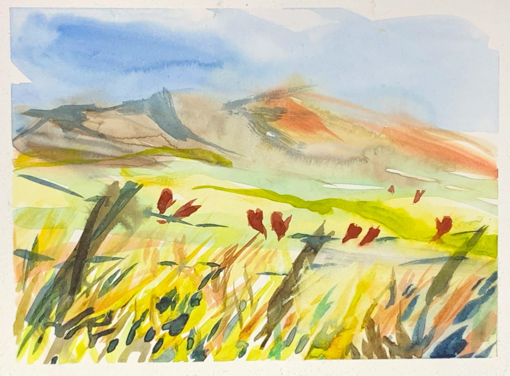 Paints are 4×6″ watercolor on 140# HP watercolor paper, 2019, copyrighted with all rights reserved by Jean Krueger.