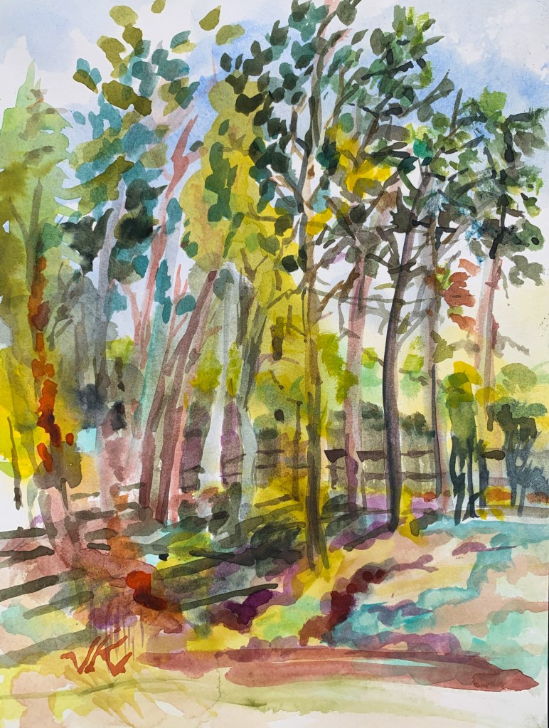 Another take on fall at Engelke’s farm. This painting follows the movement of trees and the shadows they cast.