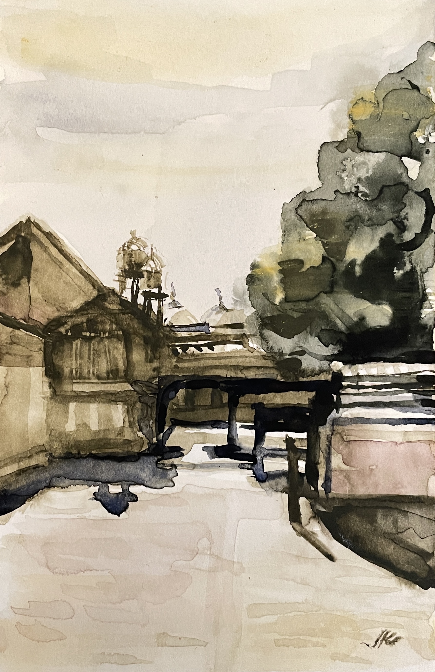 We spent a few monthes in India in 2017. It’s such a wondeful place. This is a painting of a major mosque complex. I’ve painted the still, dry hotness that baked us in the late spring afternoon.
